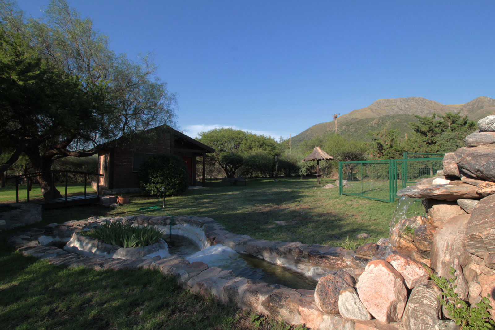 Cabañas el Aguaribay poseen una relajante cascada artificial ofreciendo un simple y natural sonido del fluir de sus aguas.