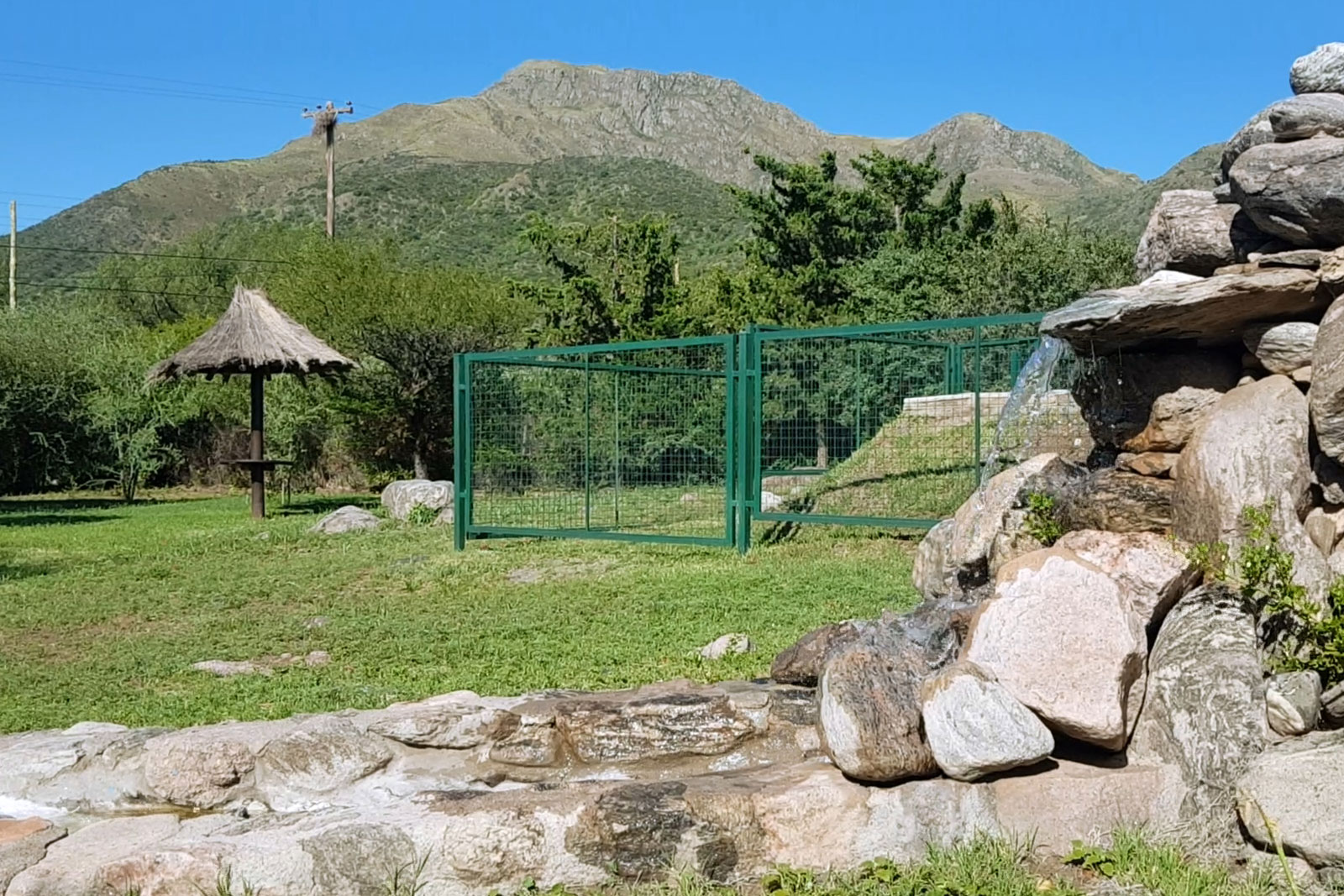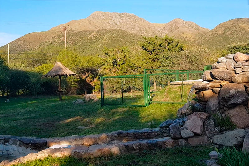La cabañas poseen una relajante cascada artificial en donde el simple y natural sonido del fluir de sus aguas en combinación con su fabulosa vista hacia los cerros, hacen de cabañas el Aguaribay una excelente elección a la hora de alojarse en capilla del monte.