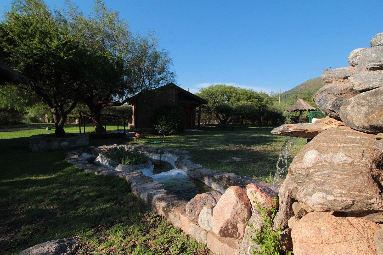 Nuestro complejo cuenta con un parque de 2300 metros cuadrados y 3 cabañas con una amplia distancia entre sí. En este bello y cuidado jardín podrá disfrutar de una relajante cascada artificial, en donde el simple y natural sonido del fluir de sus aguas, en combinación con su fabulosa vista hacia los cerros, hacen de cabañas el aguaribay una excelente elección a la hora de alojarse en capilla del monte.